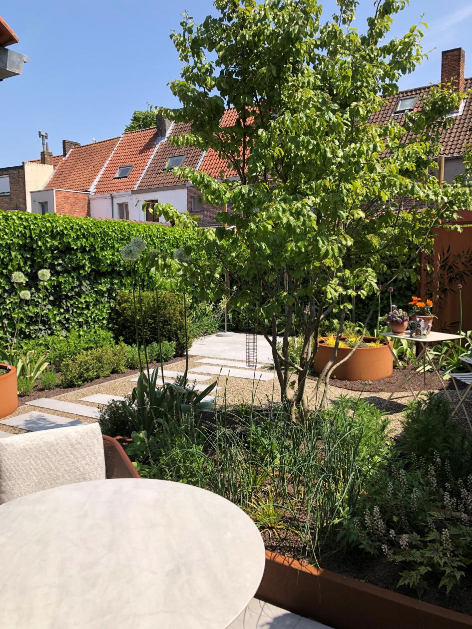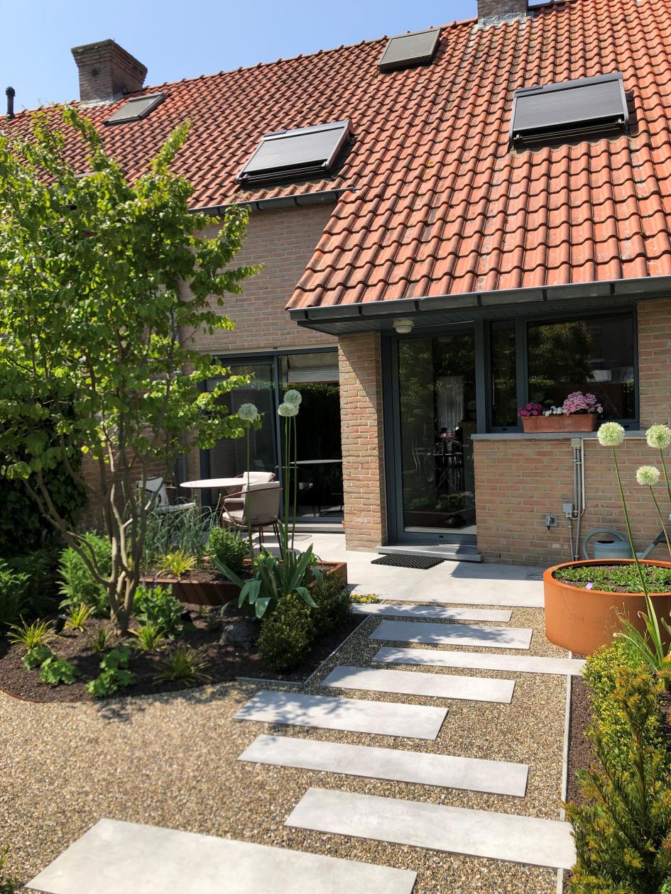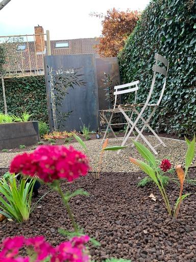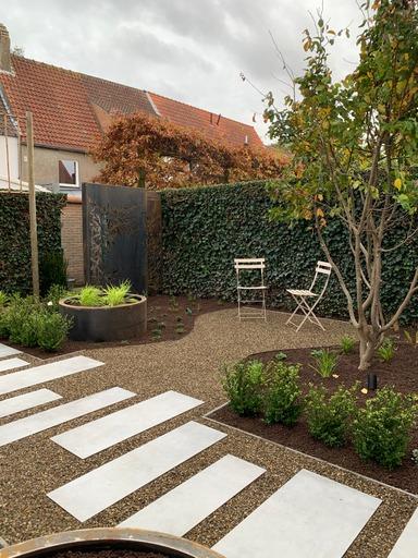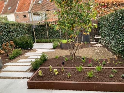 De firma Bisschop heeft eind oktober 2022 mijn klein overvol stadstuintje omgetoverd in een overzichtelijk en rustgevend tuintje. In amper 5 werkdagen heeft een bijzonder ijverige ploeg medewerkers er alles aan gedaan om de tuin opnieuw aan te leggen en tot in de puntjes af te werken. Dit is nu een verlengstuk van mijn woonkamer geworden. Het kriebelt momenteel al om vanaf volgende lente volop van de nieuw aangelegde tuin te genieten.