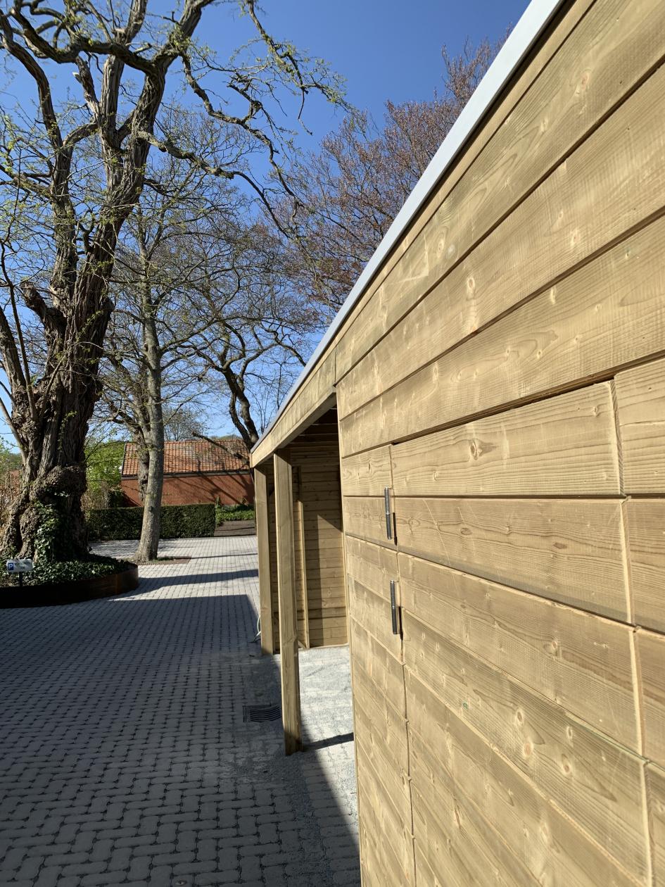 Klanten die met de fiets komen kunnen deze veilig parkeren in de ruime fietsenstalling.