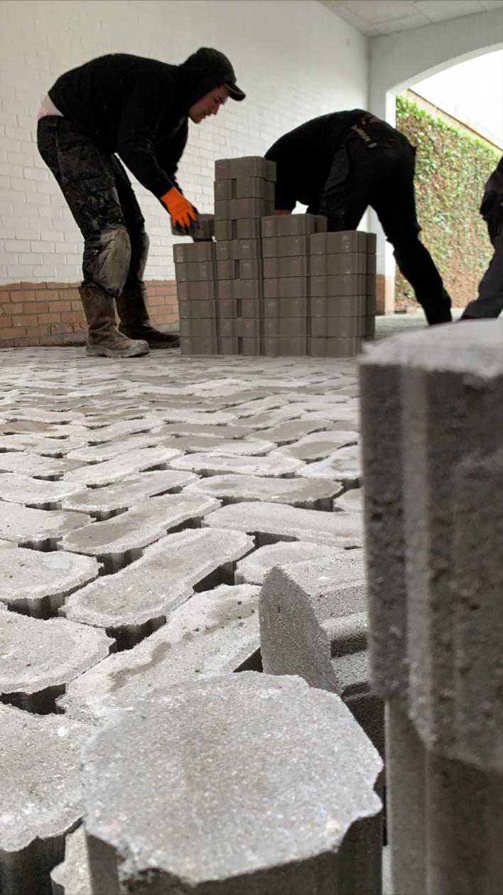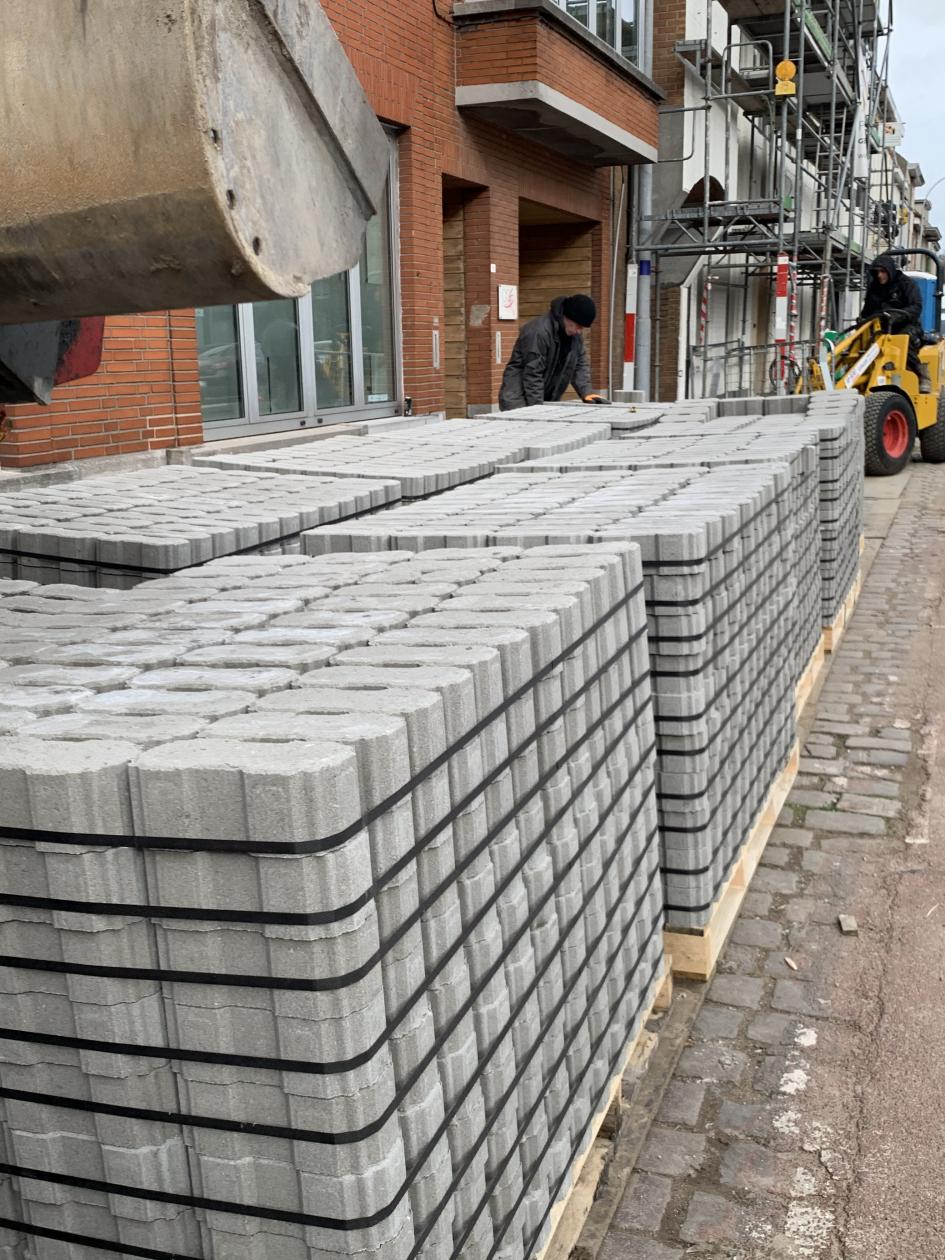 Voor de aanleg van de parking hebben we gebruik gemaakt van waterpasserende klinkers.