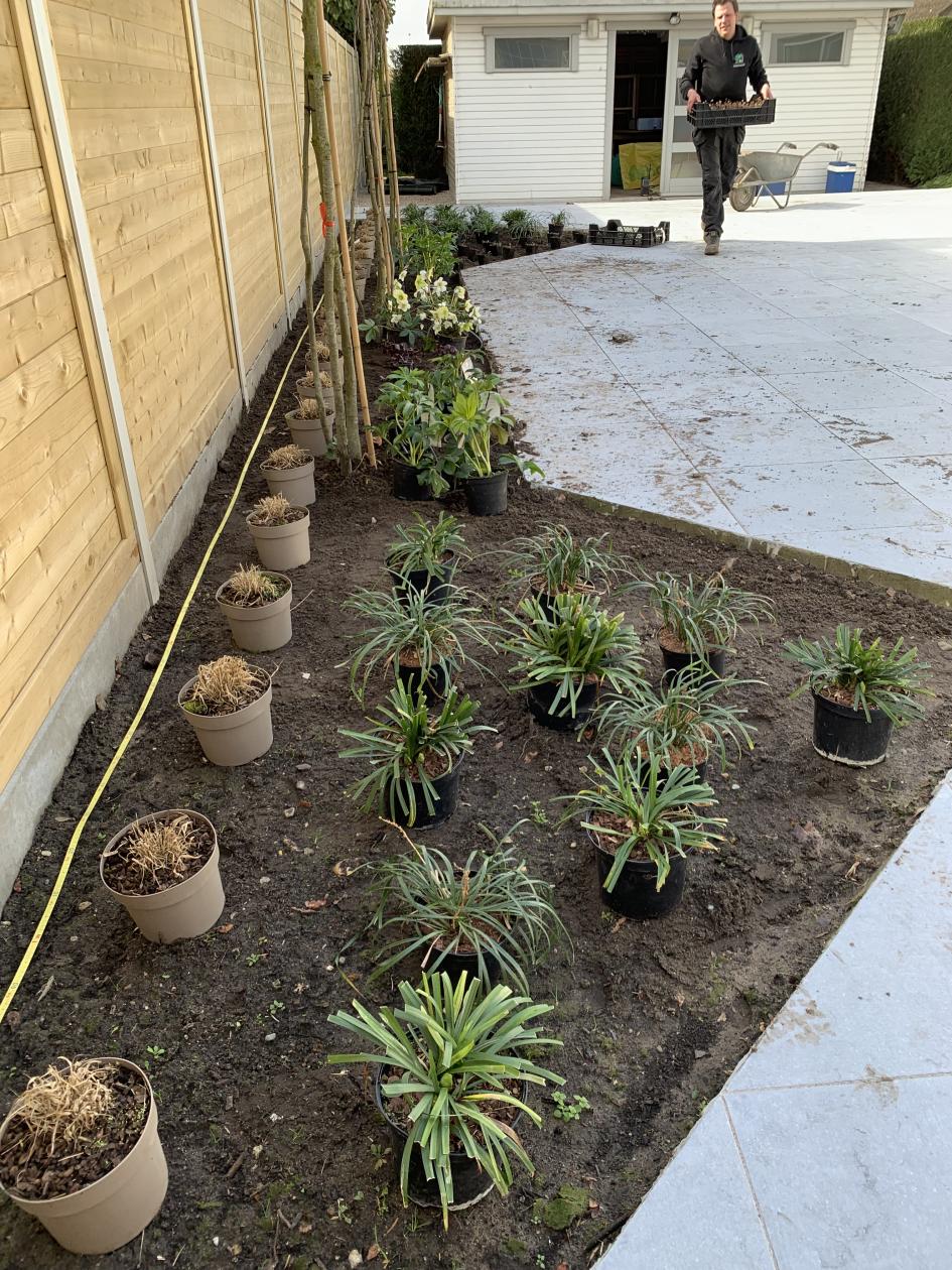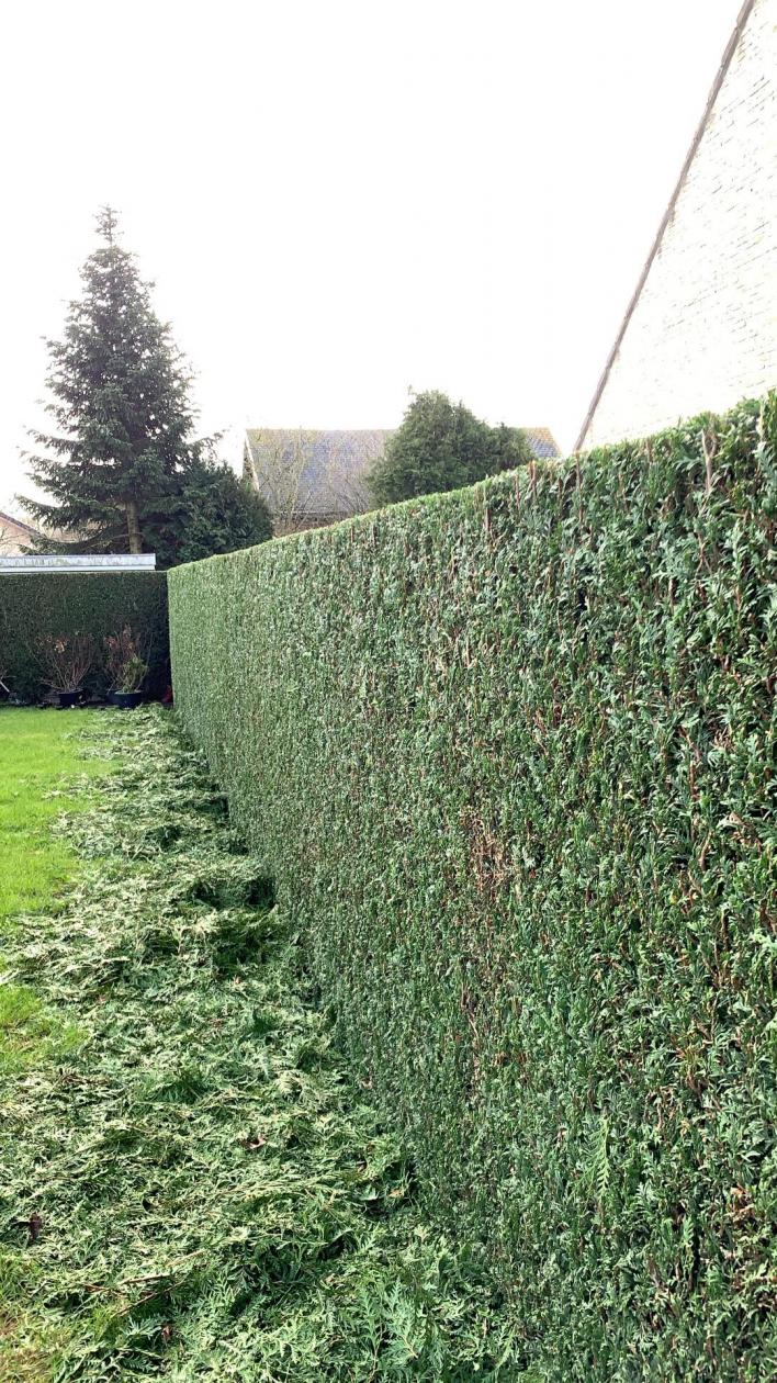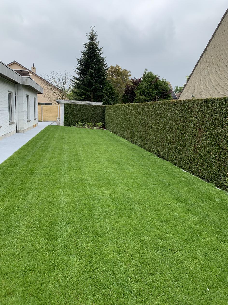 De leibomen achteraan zorgen voor extra privacy en een groen scherm ipv het zicht op de achterliggende woning.