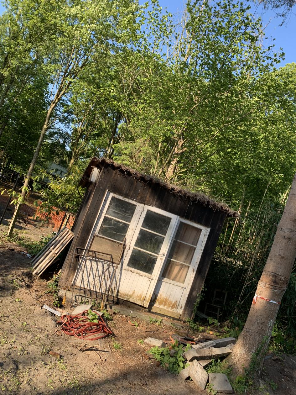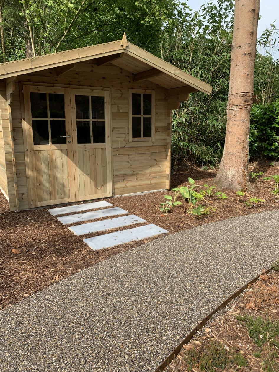 Ook het oude tuinhuis maakte plaats voor een mooi binnen het geheel passend nieuw tuinhuis.