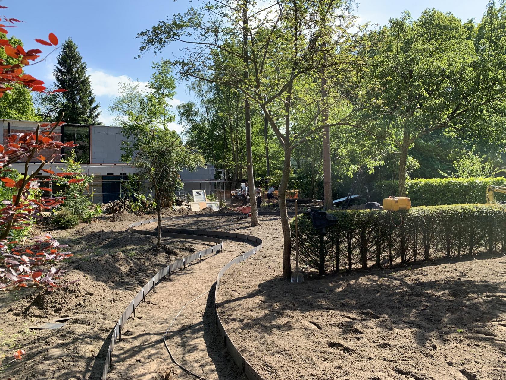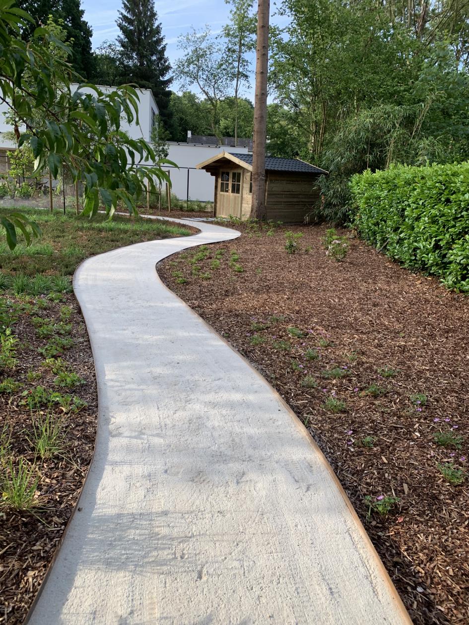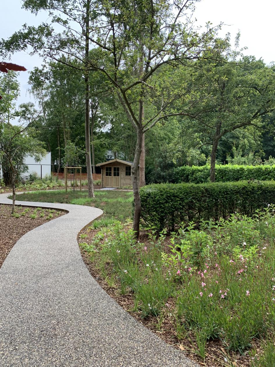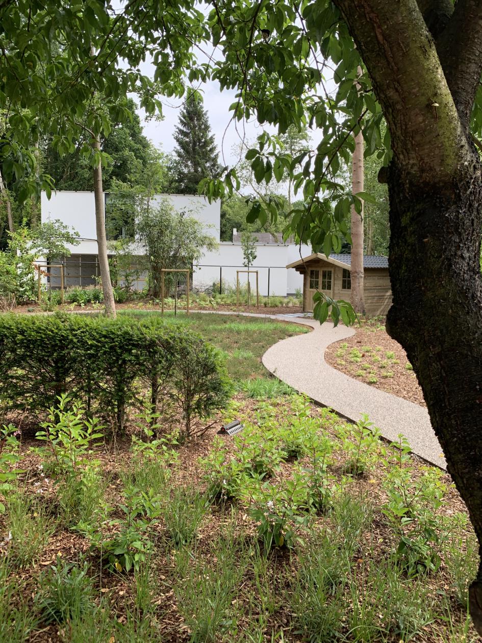 Wat ooit een bosrijke en vrij verwilderde tuin was, is omgevormd tot een overzichtelijke maar vooral rolstoel toegankelijke tuin.