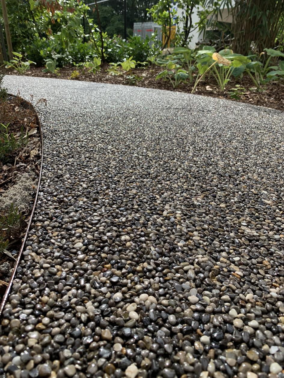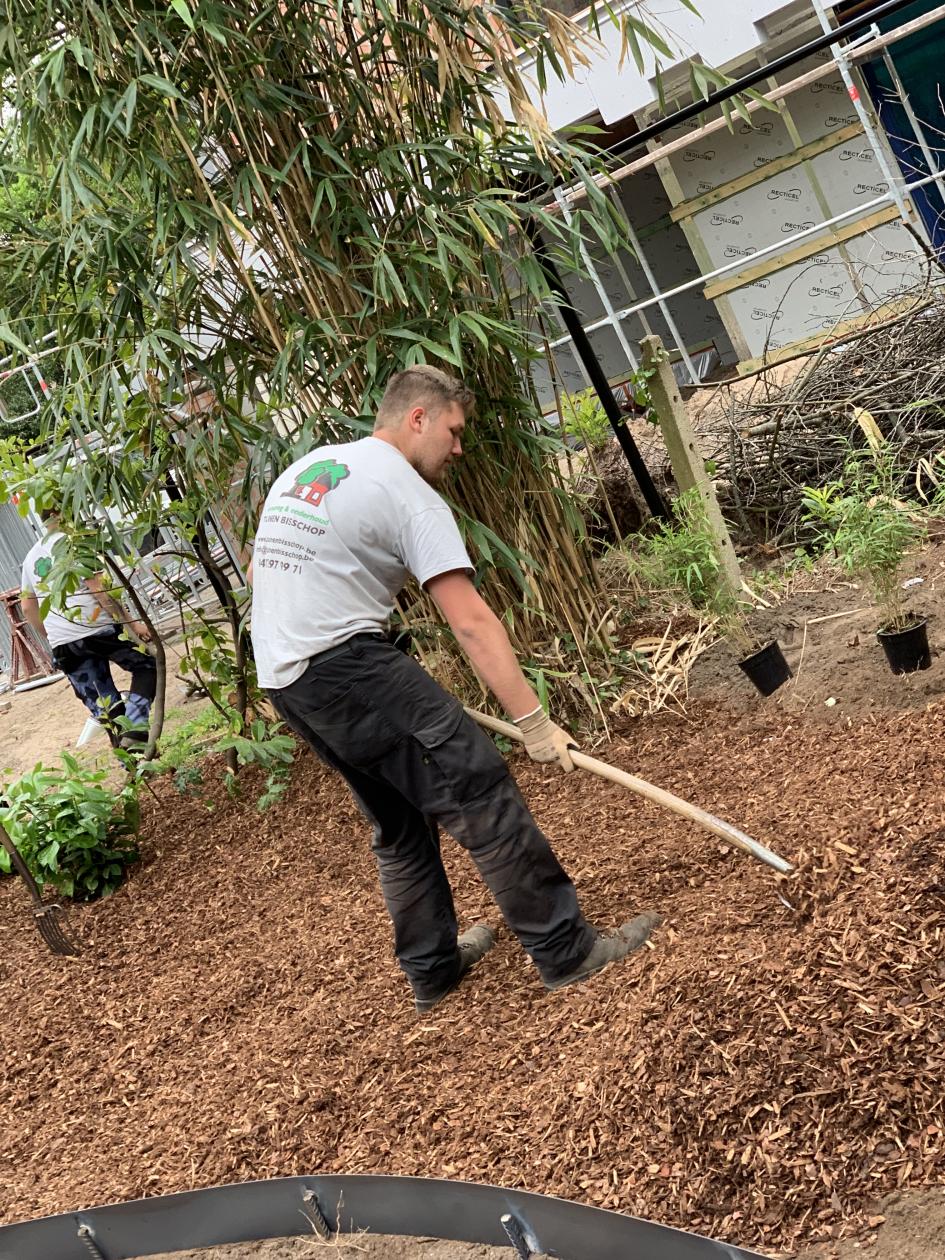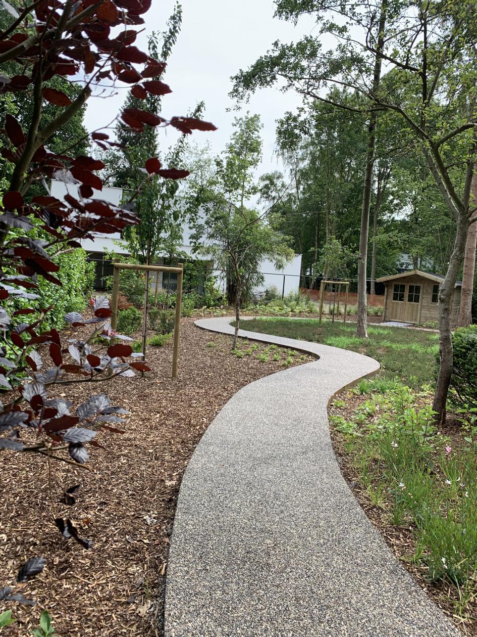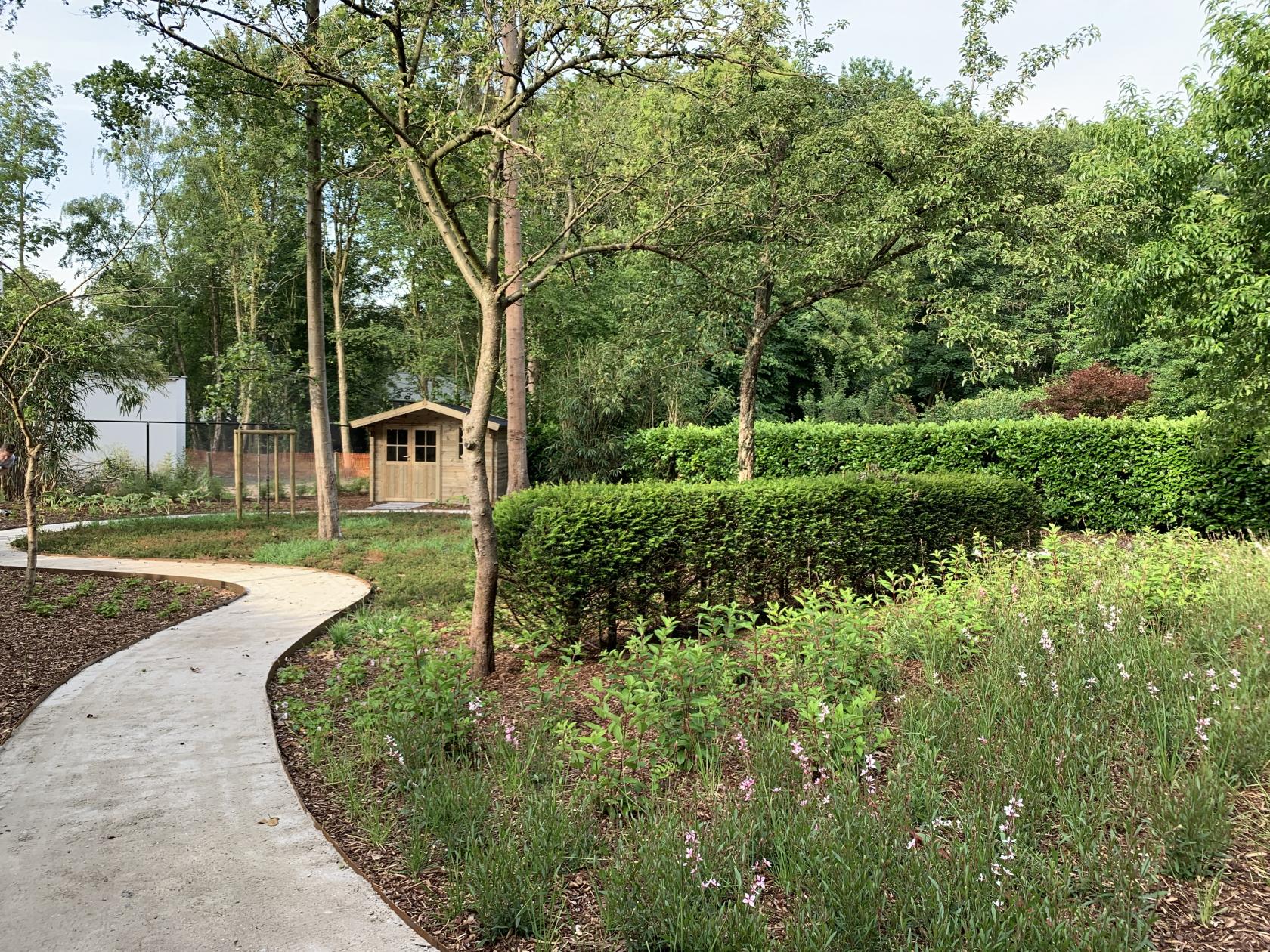 Wat ooit een bosrijke en vrij verwilderde tuin was, is omgevormd tot een overzichtelijke maar vooral rolstoel toegankelijke tuin.