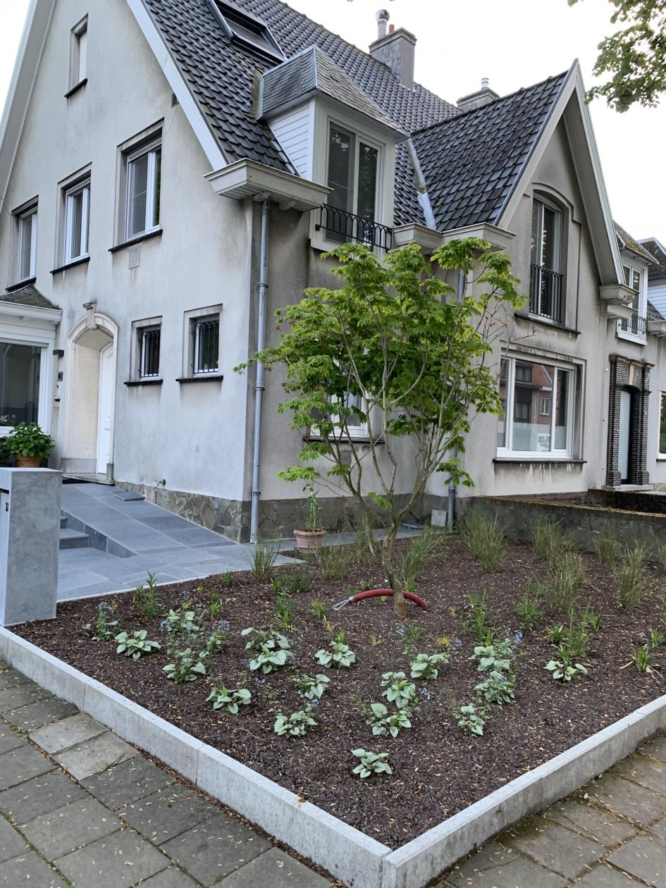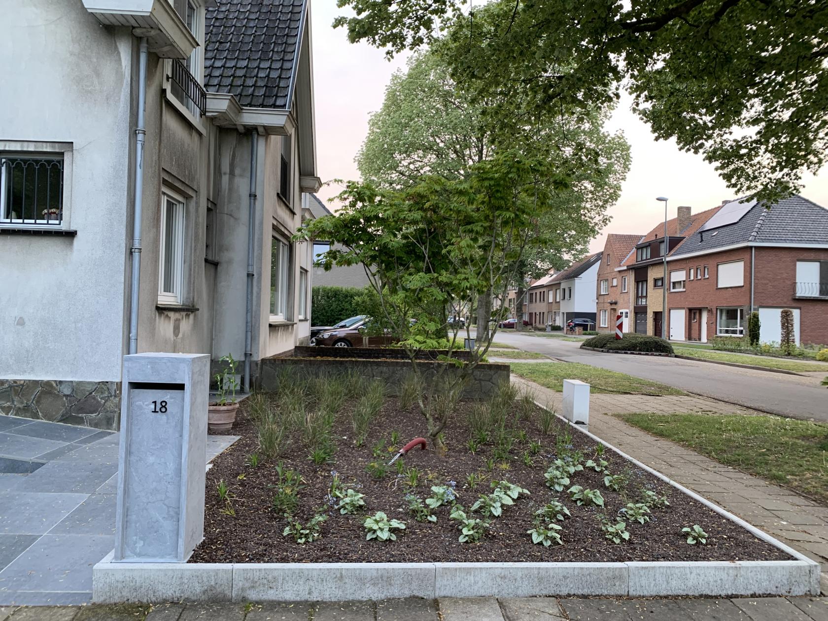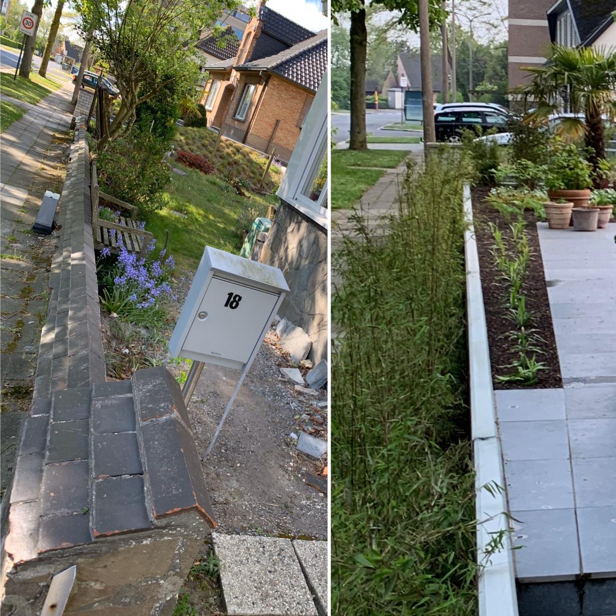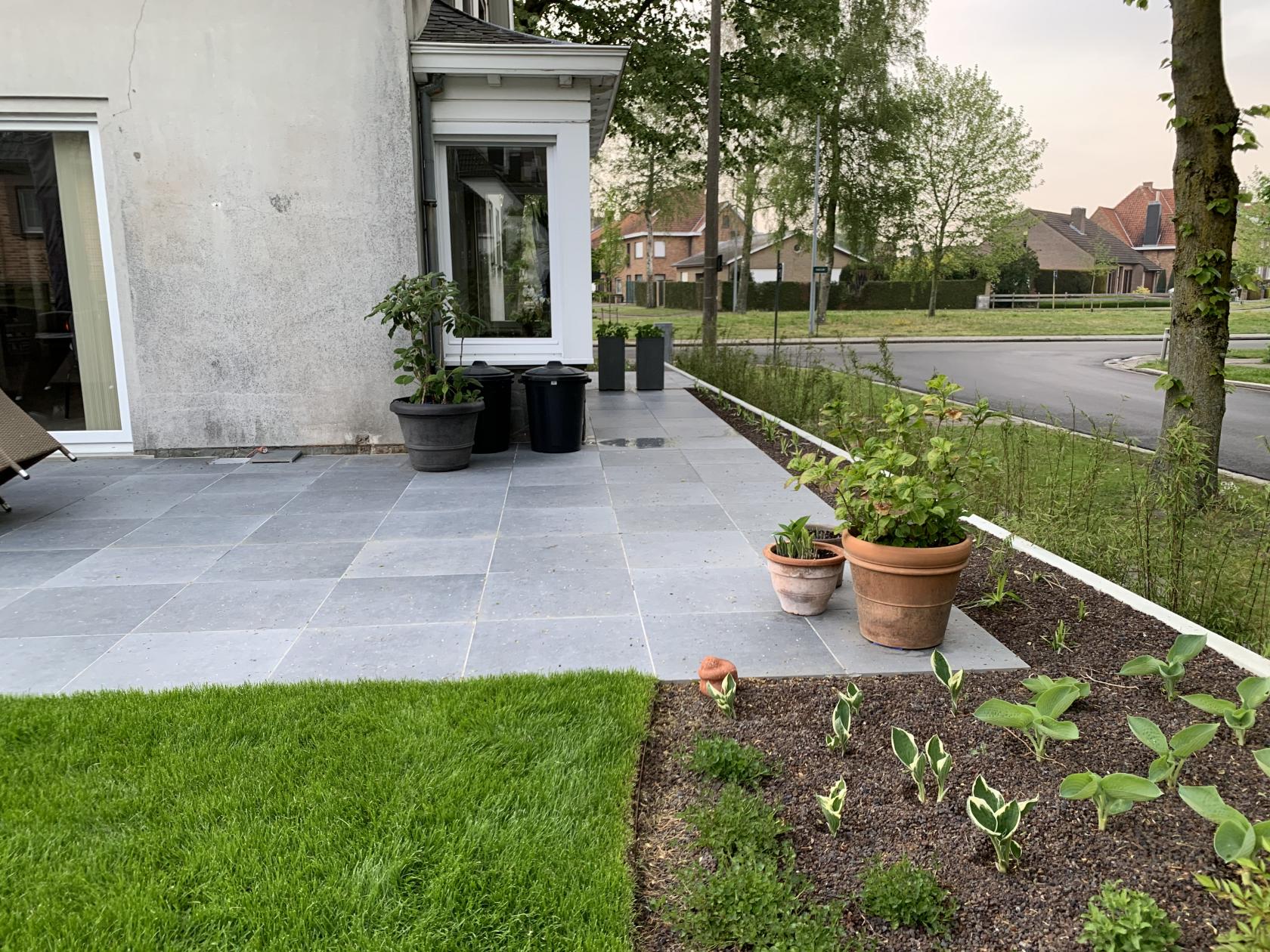 'Voor de volledige renovatie van onze tuin kozen wij voor tuinaanleg Bisschop. De renovatie omvatte: grondwerken zoals plaatsen van keerwanden, regenput, alle ondergrondse buizen vervangen, opvoeren met aarde. Daarnaast werd ook een ruim terras aangelegd, de volledige beplanting voorzien en graszoden. Wij kunnen eigenlijk vrij kort zijn over het team Bisschop. Het werkt als een perfect geoliede machine! Iedereen weet perfect wat hij moet doen, ze werken prachtig samen elk met zijn eigen specialiteit. Ook Dries staat steeds open voor ideeën of suggesties en helpt steeds zoeken naar oplossingen. Lindsay neemt dan weer het ontwerp en de voorbereidingen voor de aanleg van de planten voor haar rekening. Wat voor ons ook een groot pluspunt was is dat de offerte die gemaakt wordt tot op de cent klopt met de afrekening van de uitgevoerde werken. Ook planning en timing van de werken worden mooi nagekomen. Kortom: wij zijn zeer blij met onze keuze om met tuinen Bisschop gewerkt te hebben, we zouden het zo opnieuw overdoen. Echt een aanrader als je zoekt naar kwaliteit, mooie afwerking en goede prijs. Tuinen Bisschop is gewoon een topteam!