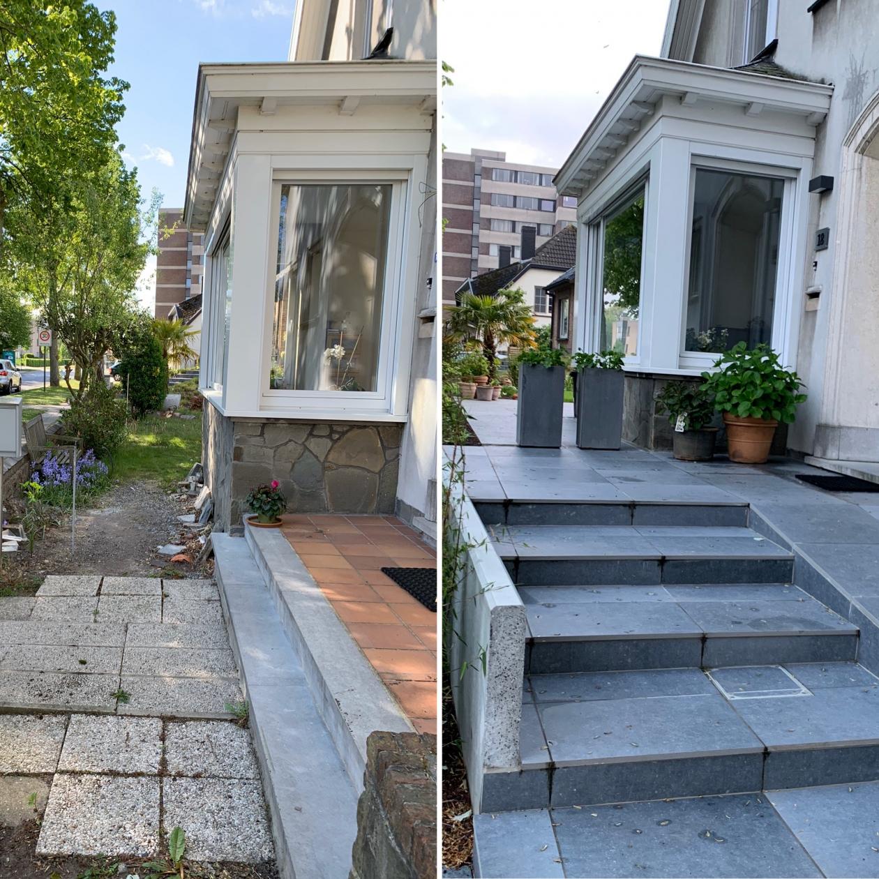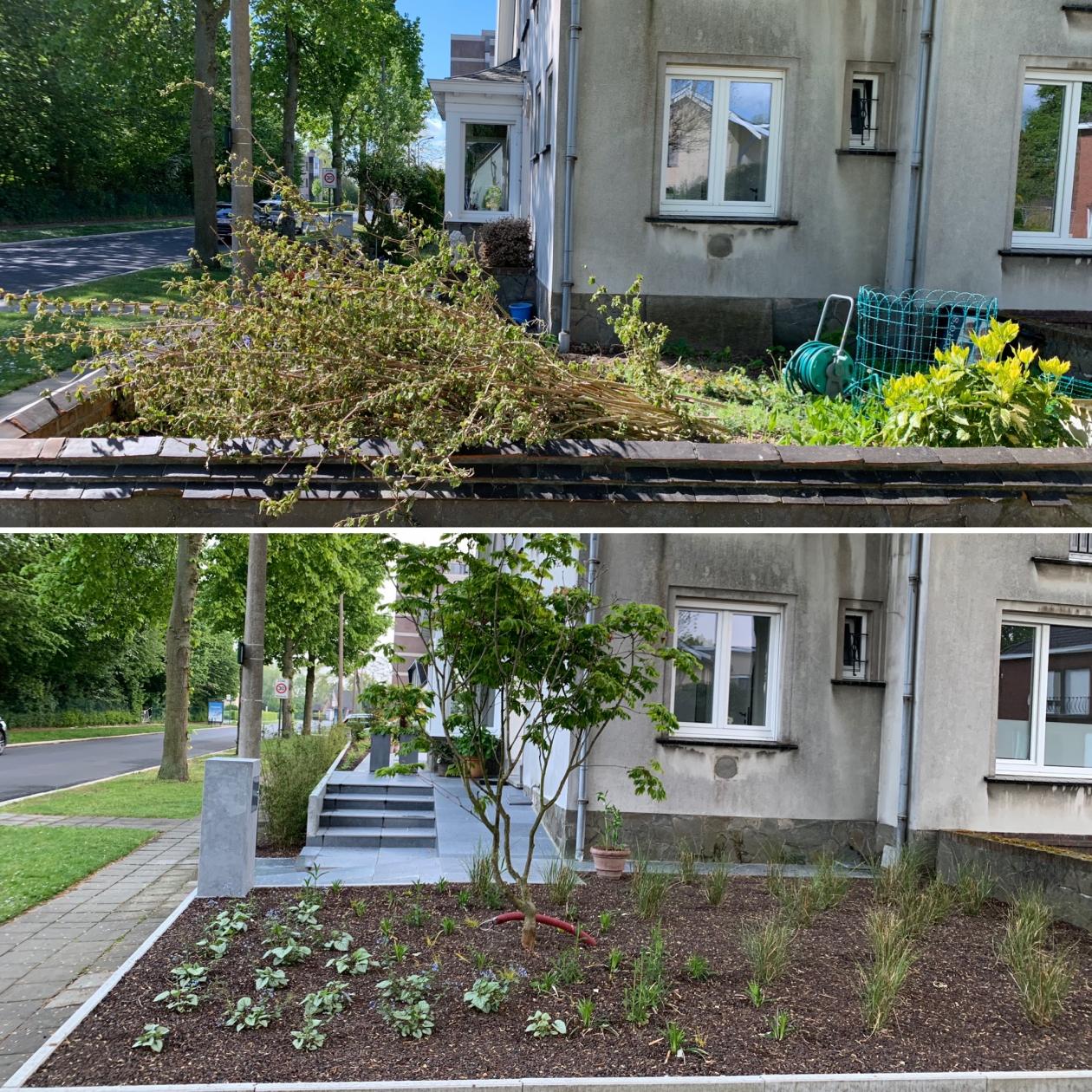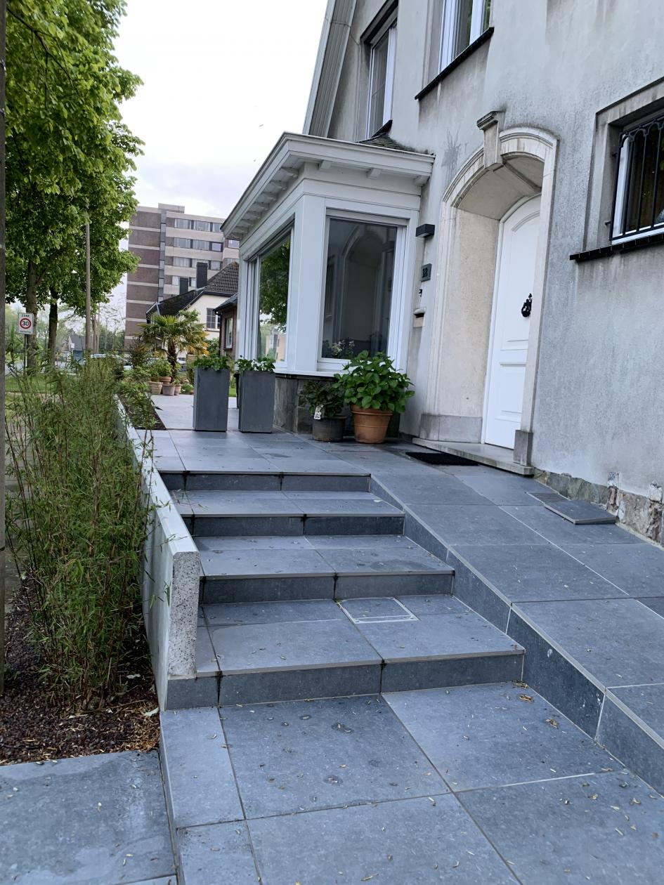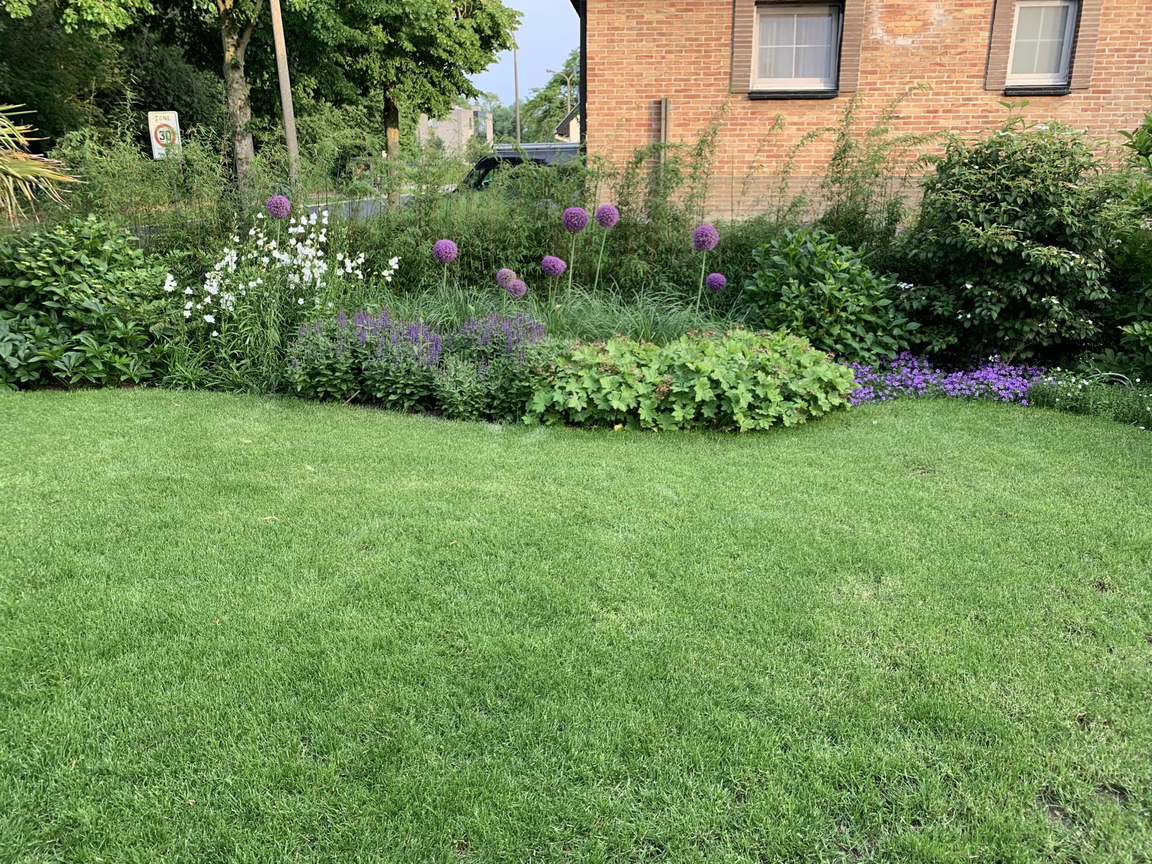 'Voor de volledige renovatie van onze tuin kozen wij voor tuinaanleg Bisschop. De renovatie omvatte: grondwerken zoals plaatsen van keerwanden, regenput, alle ondergrondse buizen vervangen, opvoeren met aarde. Daarnaast werd ook een ruim terras aangelegd, de volledige beplanting voorzien en graszoden. Wij kunnen eigenlijk vrij kort zijn over het team Bisschop. Het werkt als een perfect geoliede machine! Iedereen weet perfect wat hij moet doen, ze werken prachtig samen elk met zijn eigen specialiteit. Ook Dries staat steeds open voor ideeën of suggesties en helpt steeds zoeken naar oplossingen. Lindsay neemt dan weer het ontwerp en de voorbereidingen voor de aanleg van de planten voor haar rekening. Wat voor ons ook een groot pluspunt was is dat de offerte die gemaakt wordt tot op de cent klopt met de afrekening van de uitgevoerde werken. Ook planning en timing van de werken worden mooi nagekomen. Kortom: wij zijn zeer blij met onze keuze om met tuinen Bisschop gewerkt te hebben, we zouden het zo opnieuw overdoen. Echt een aanrader als je zoekt naar kwaliteit, mooie afwerking en goede prijs. Tuinen Bisschop is gewoon een topteam!
